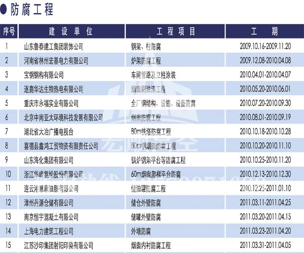 公司成立于1990年,注冊資金壹億元,具有建筑工程施工總承包壹級資質(zhì)、防水防腐保溫工程專業(yè)承包壹級資質(zhì),鋼結(jié)構(gòu)專業(yè)承包貳級,公司整體通過了質(zhì)量管理體系認(rèn)證、職業(yè)健康安全管理體系認(rèn)證、環(huán)境管理體系認(rèn)證、AAA級企業(yè)證書認(rèn)證等。